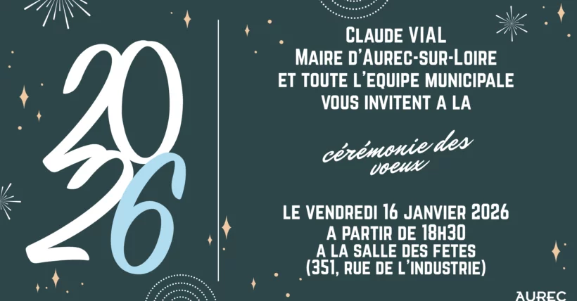 Comme chaque année, la Mairie d’Aurec-sur-Loire invite les habitants à la cérémonie des vœux dans une ambiance chaleureuse et conviviale. La Municipalité vous invite à célébrer la nouvelle année Vendredi 16 janvier à 18h30 La municipalité d’Aurec-sur-Loire à le plaisir de convier les Aurecoises et Aurecois à la cérémonie des vœux 2026.Ce rendez-vous convivial se […]