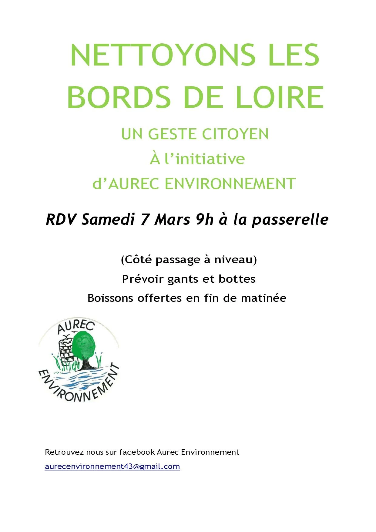 L'association Aurec Environnement organise une matinée de nettoyage des bord de Loire. Ils vous attendent nombreux !